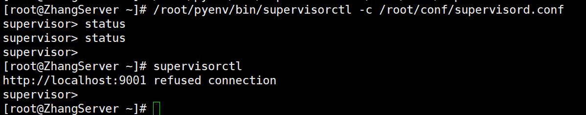 运行命令supervisorctl进行任务管理时, 是因为 客户端也要-c指定一下配置文件 /root/pyenv/bin/supervisorctl -c /root/conf/supervisord.conf