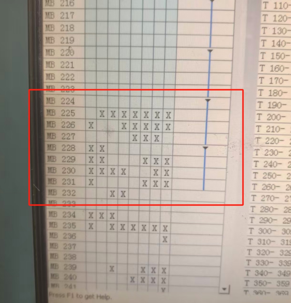 发现很多位被占用了,一个MD包含32个位地址。检索程序后发现累计气体使用量的地址使用重复,修改多处后恢复正常。