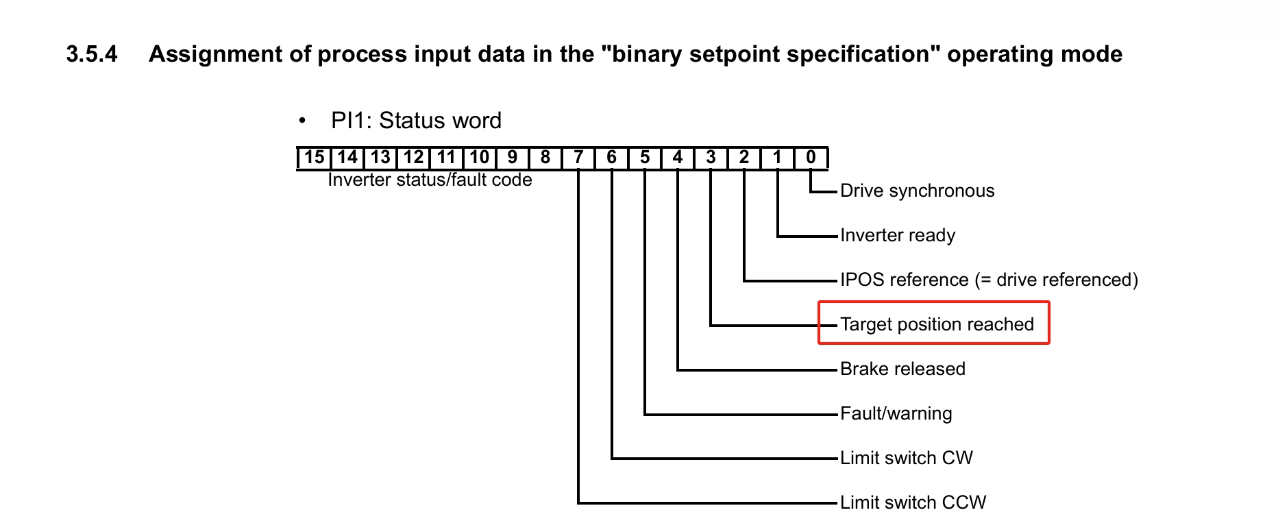 对比其他使用 MOVIDRIVE 的PLC程序,发现均未使用。西门子V90中也有类似值(ZSW1_Bit10 到达目标位置),充分验证后 删除P1_3后运行正常。